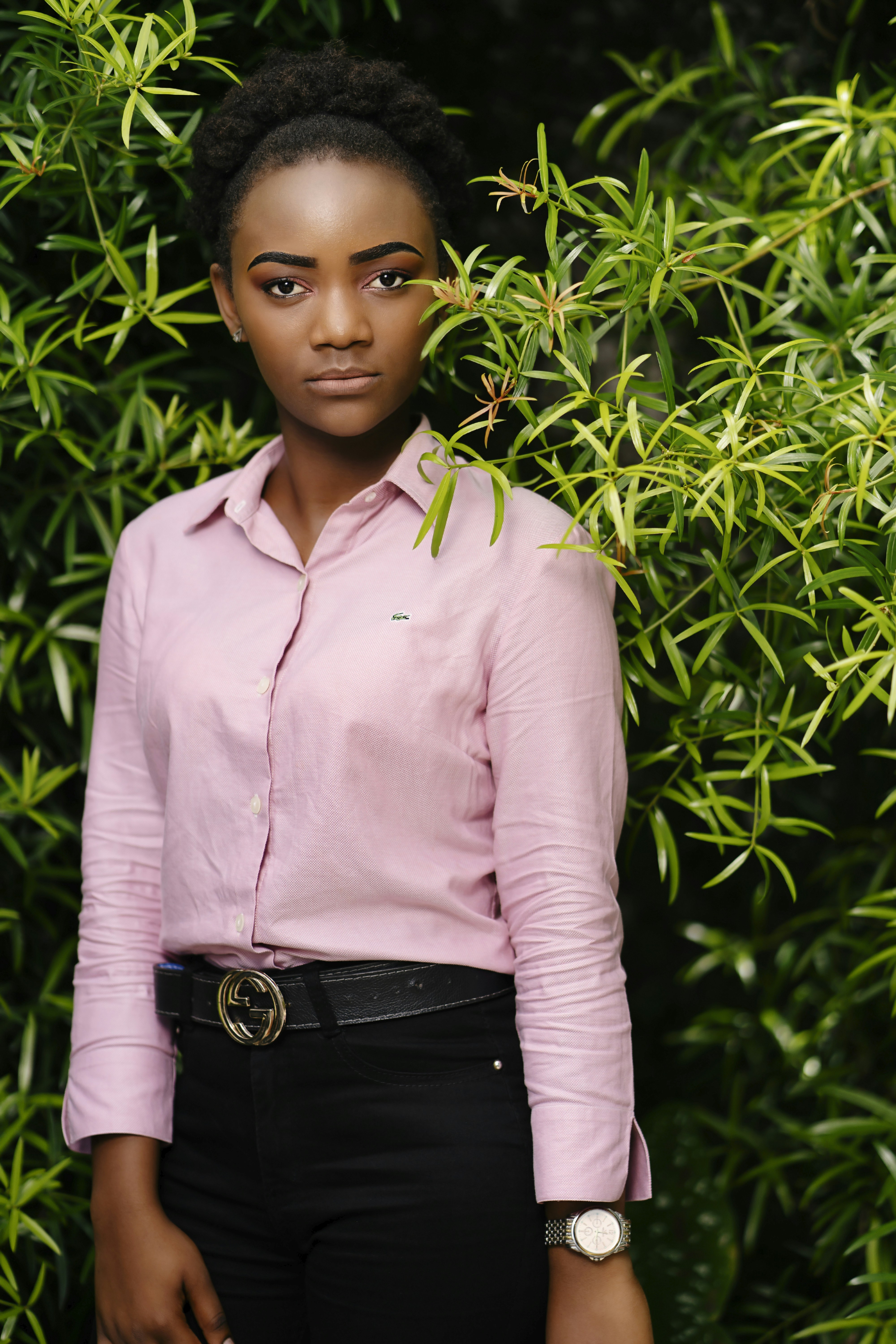 Woman In Pink Dress Shirt And Black Pants Standing Near Green Plants During Daytime Photo Free Image On Unsplash